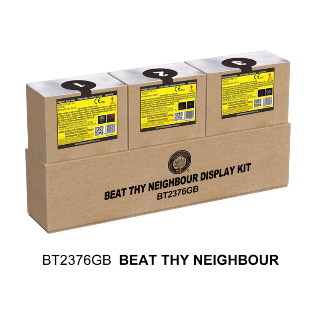 🎇 Brace yourselves for a display that’s as brash, bold, and LOUD as it gets! “BEAT THY NEIGHBOUR” doesn’t just talk the talk; it walks the walk, and it’s here to do exactly what it says on the box – BEAT ‘EM ALL!