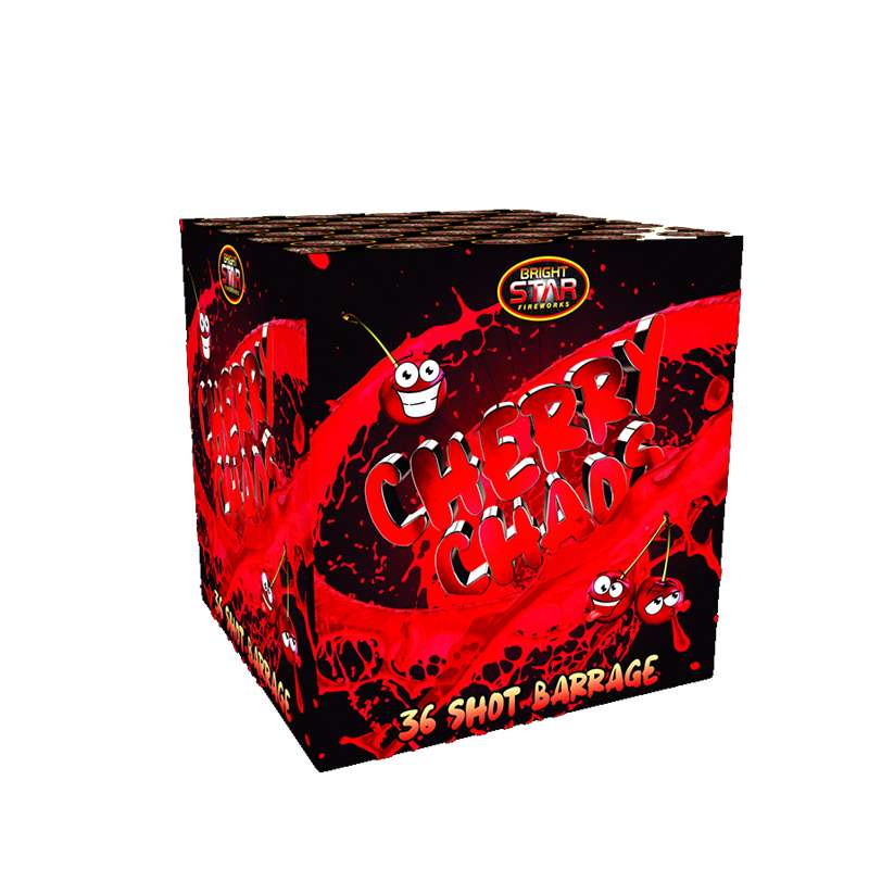 Cherry Chaos is a loud and powerful 36 shot barrage with some vivid red bursts
